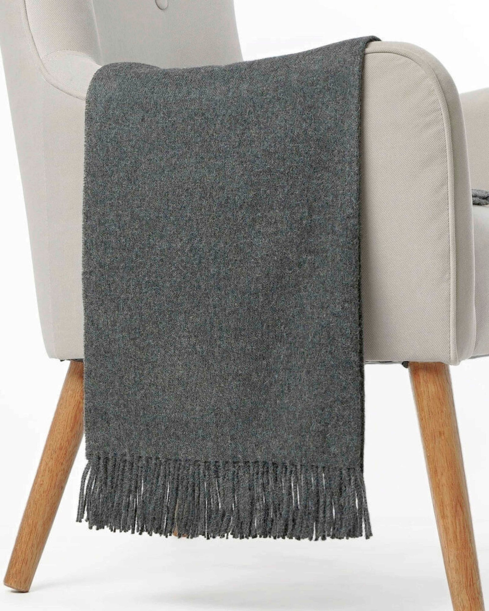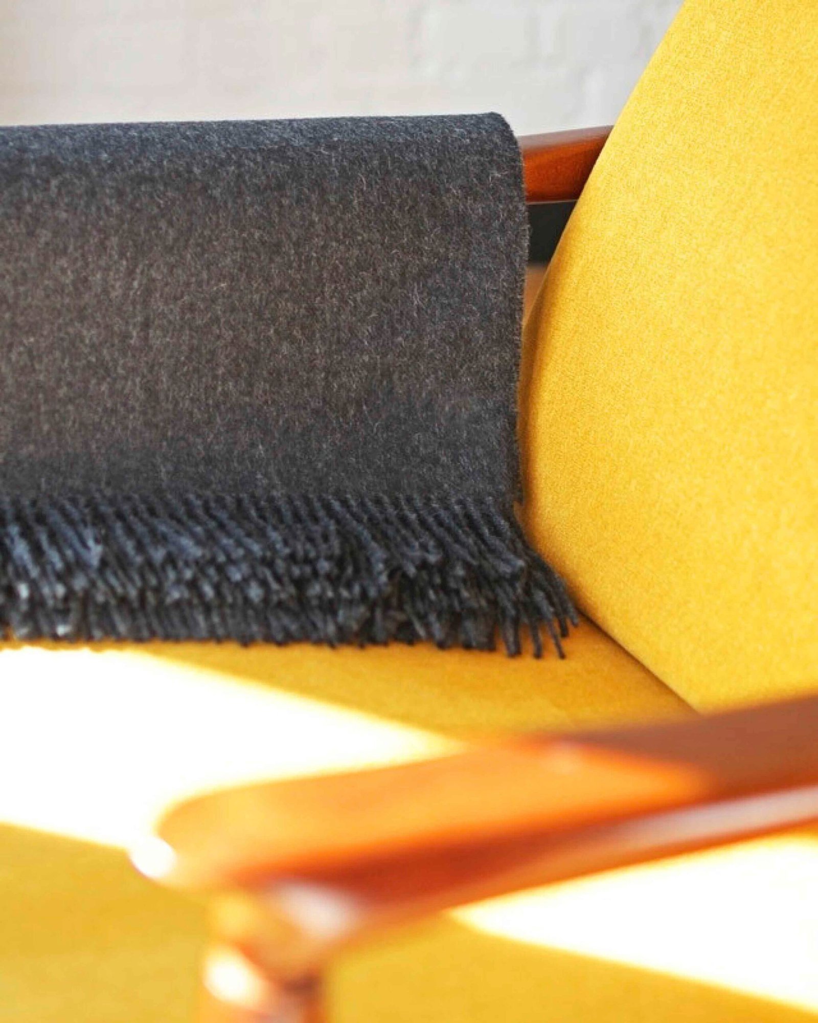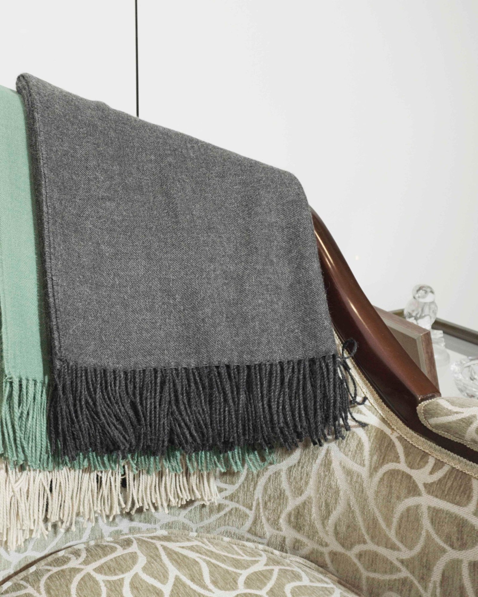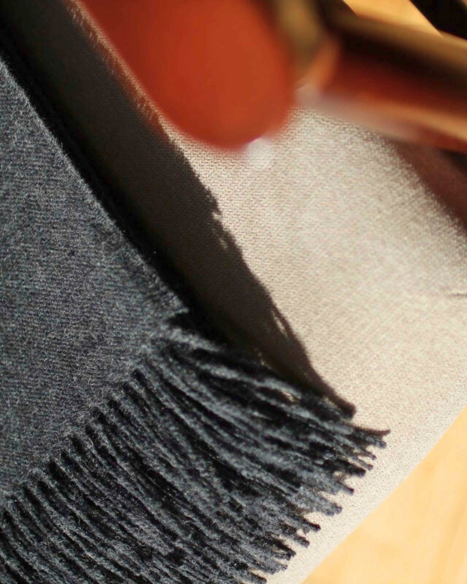 Exquisite blanket made of dark gray baby alpaca, with a classic flat-weave design. This elegant accessory not only provides an exceptionally soft and warm feel for your moments of comfort at home, but also adds a touch of distinction and sophistication to your home decor, thanks to its unmatched elegance and style.