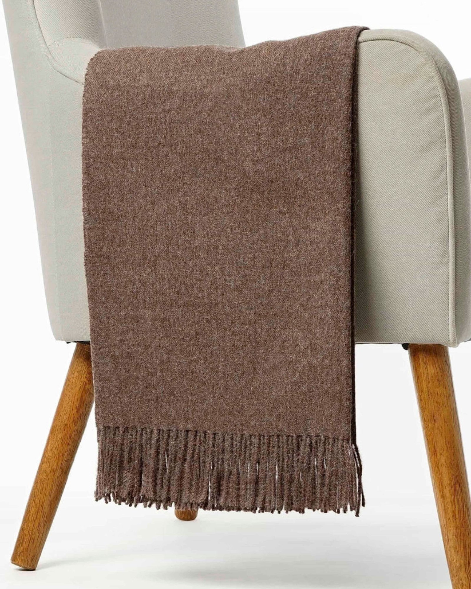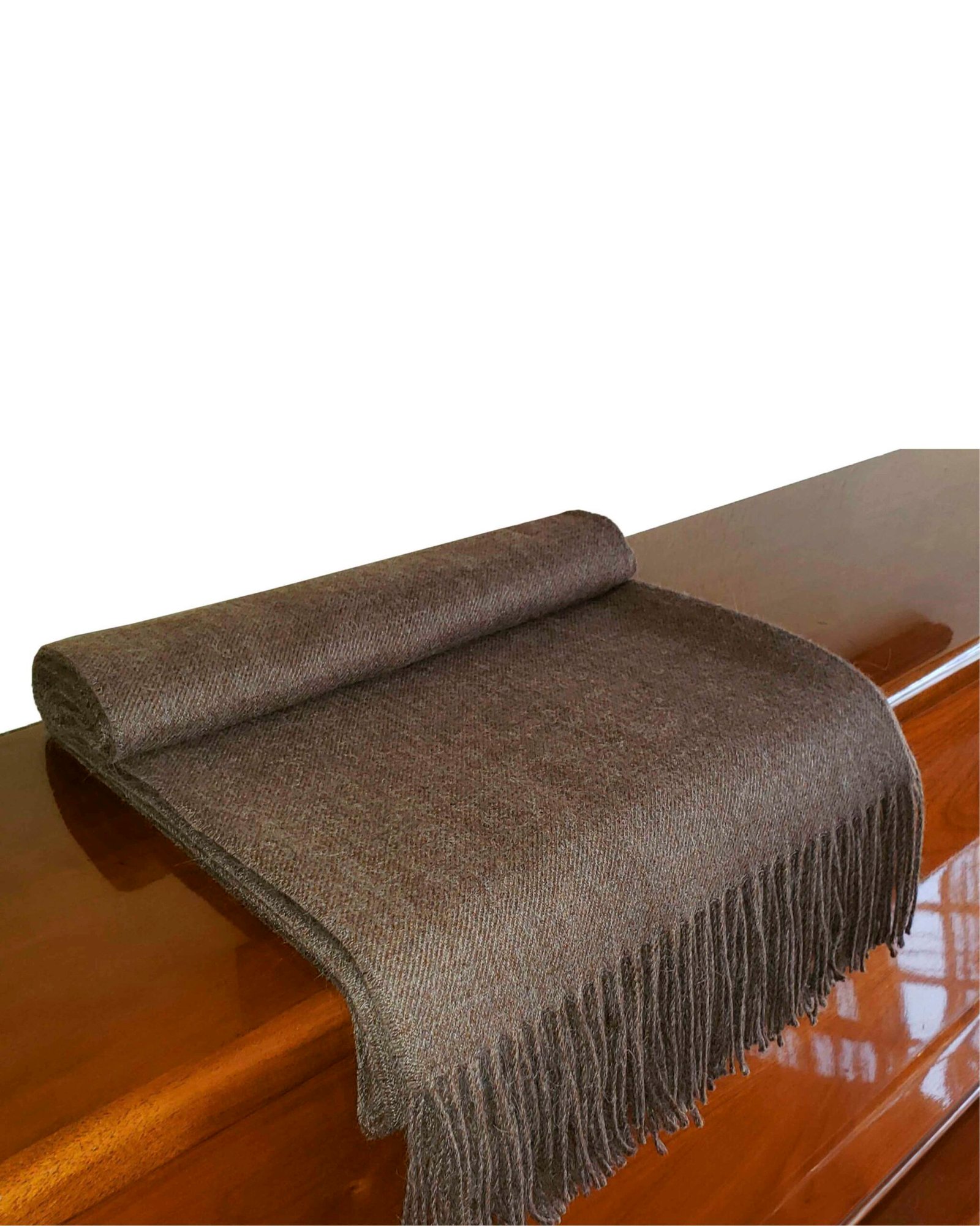 Exquisite blanket made of baby alpaca brown color, with a classic flat-weave design. This elegant accessory not only provides an exceptionally soft and warm feel for your moments of comfort at home, but also adds a touch of distinction and sophistication to your home decor, thanks to its unmatched elegance and style.