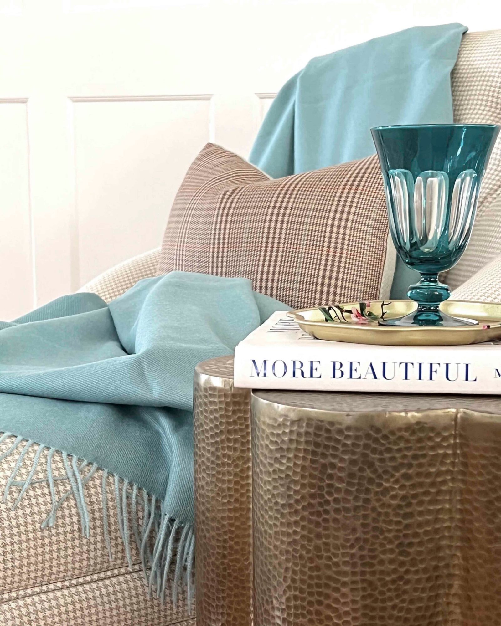 Exquisite blanket made of light blue baby alpaca, with a classic flat-weave design. This elegant accessory not only provides an exceptionally soft and warm feel for your moments of comfort at home, but also adds a touch of distinction and sophistication to your home decor, thanks to its unmatched elegance and style.