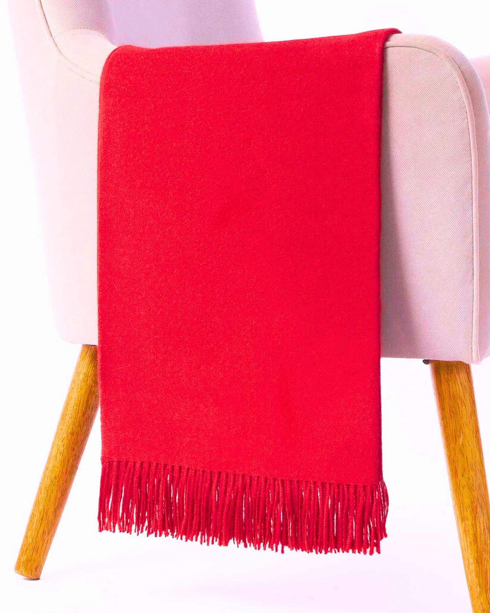 Exquisite blanket made of red baby alpaca, with a classic flat-weave design. This elegant accessory not only provides an exceptionally soft and warm feel for your moments of comfort at home, but also adds a touch of distinction and sophistication to your home decor, thanks to its unmatched elegance and style.
