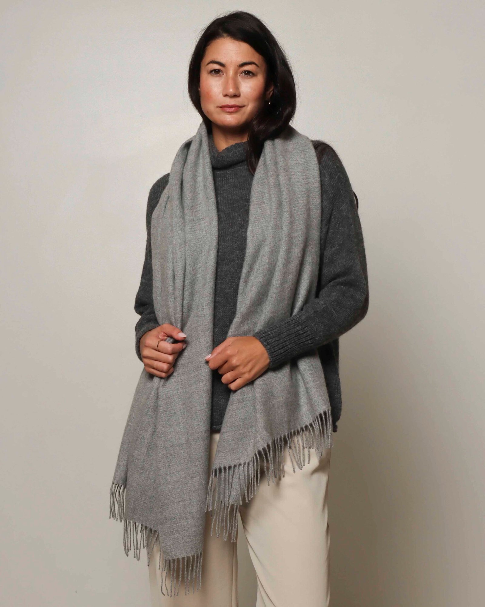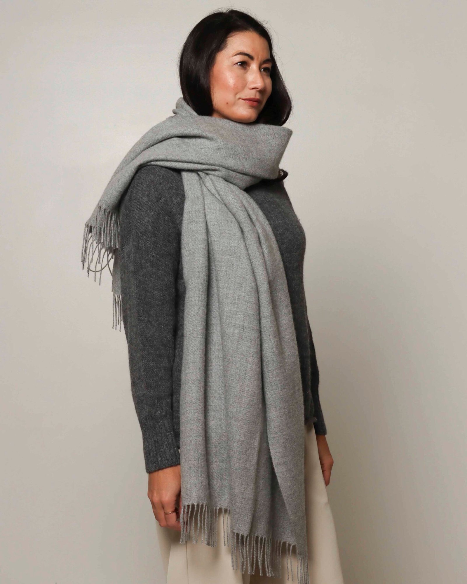 The Classic 100% Baby Alpaca Shawl is a piece of timeless distinction, crafted using the most select and finest fiber that Peru offers. Expertly woven in a smooth finish, it guarantees an exquisite feel and functional warmth. Its generous width allows you to fully envelop yourself in supreme softness, providing comfort without adding weight. This essential accessory features a simple design that easily transforms into an elegant formal stole or a sophisticated daily wrap, instantly elevating any wardrobe.