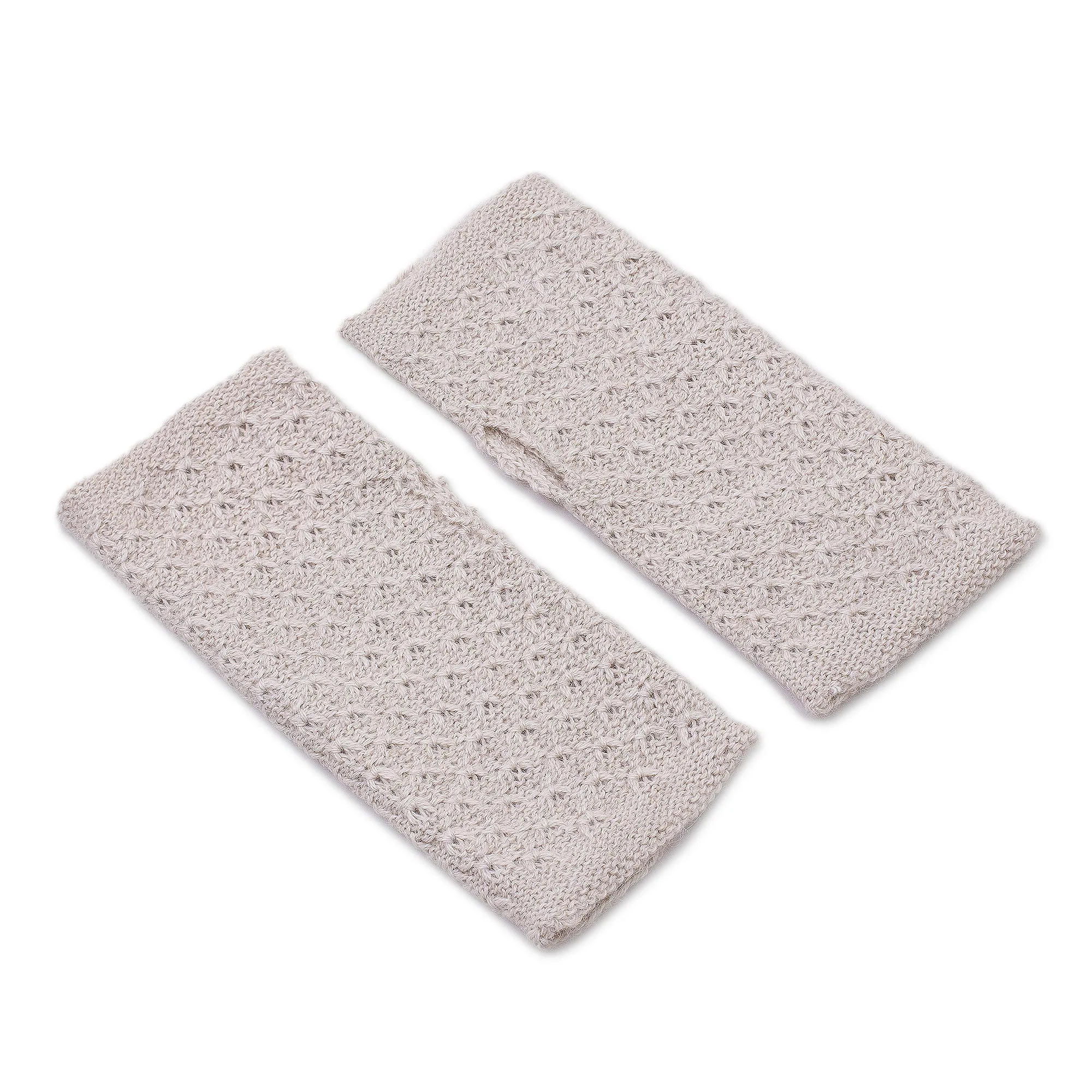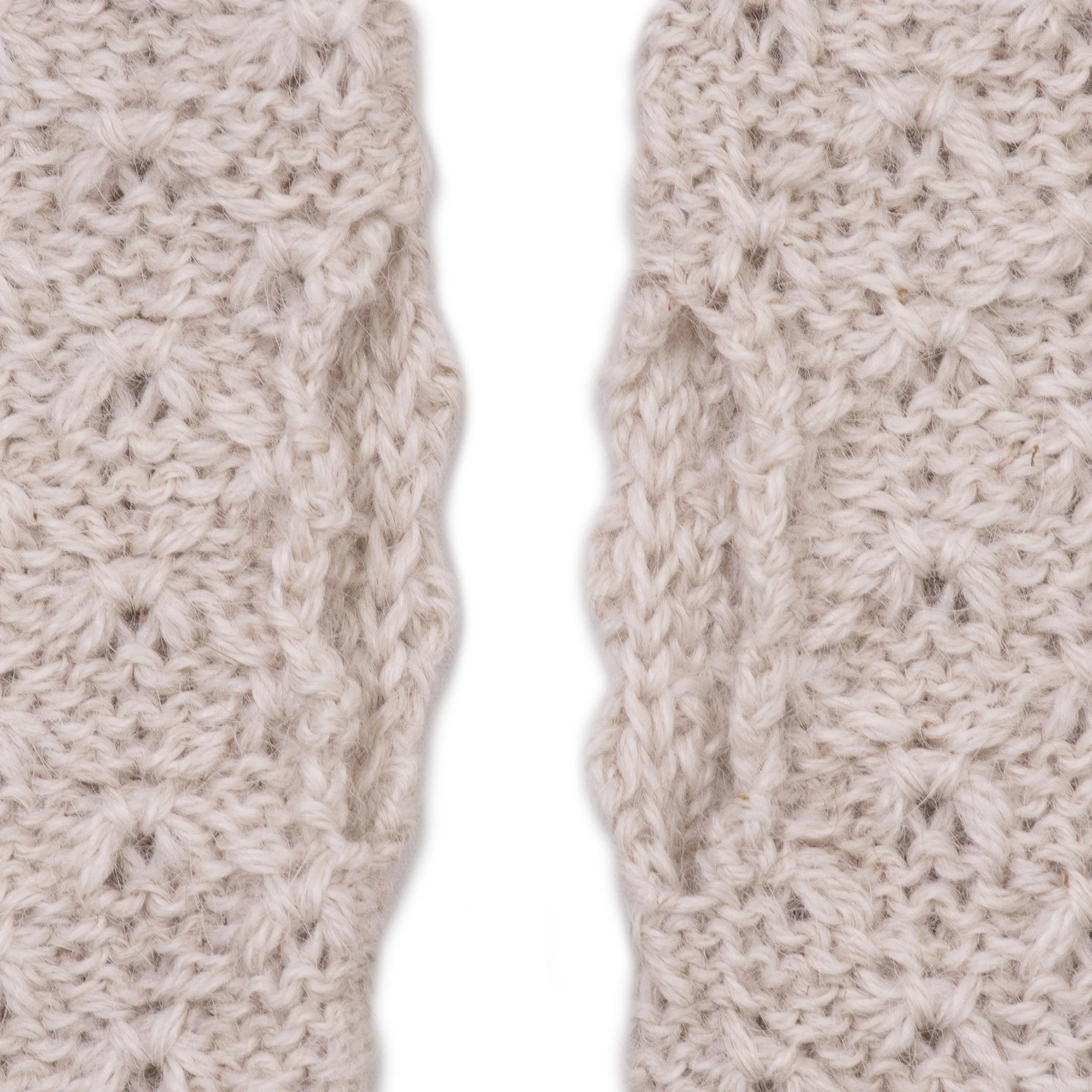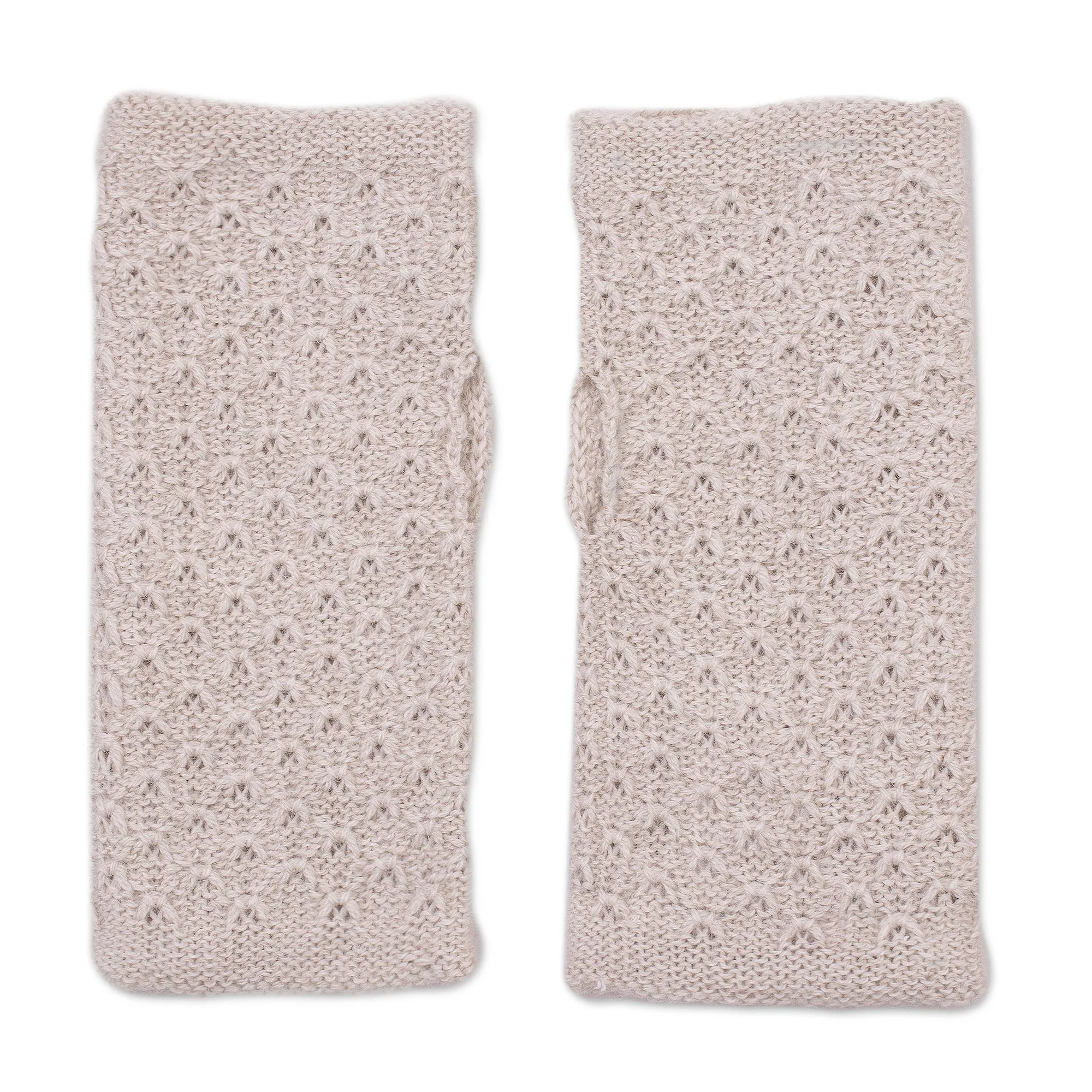 Our fingerless gloves are knit from the finest Baby Alpaca and feature a delicate lace pattern that adds unique texture and elegance. Designed to keep your hands and wrists warm without sacrificing the dexterity you need to use your phone or work.