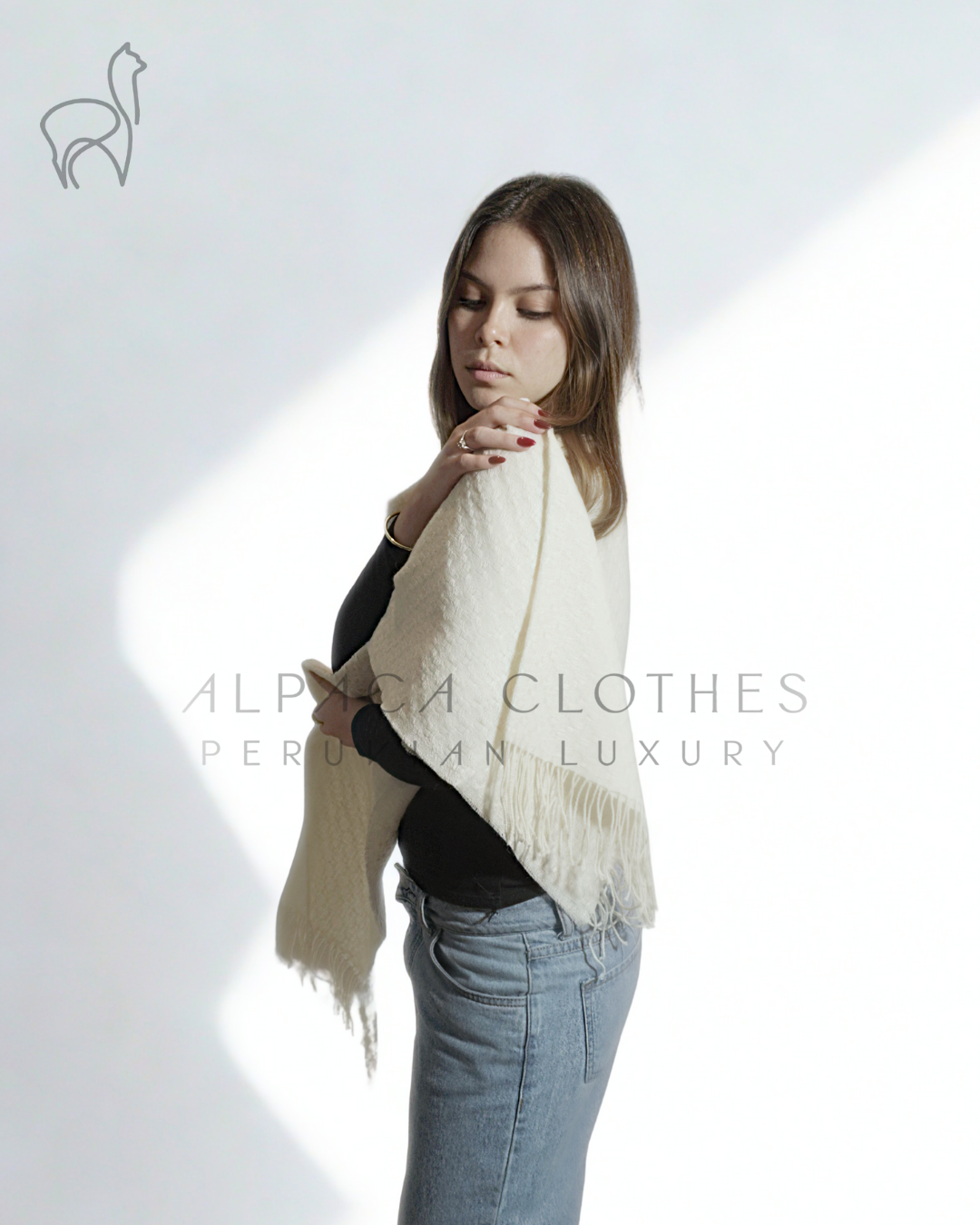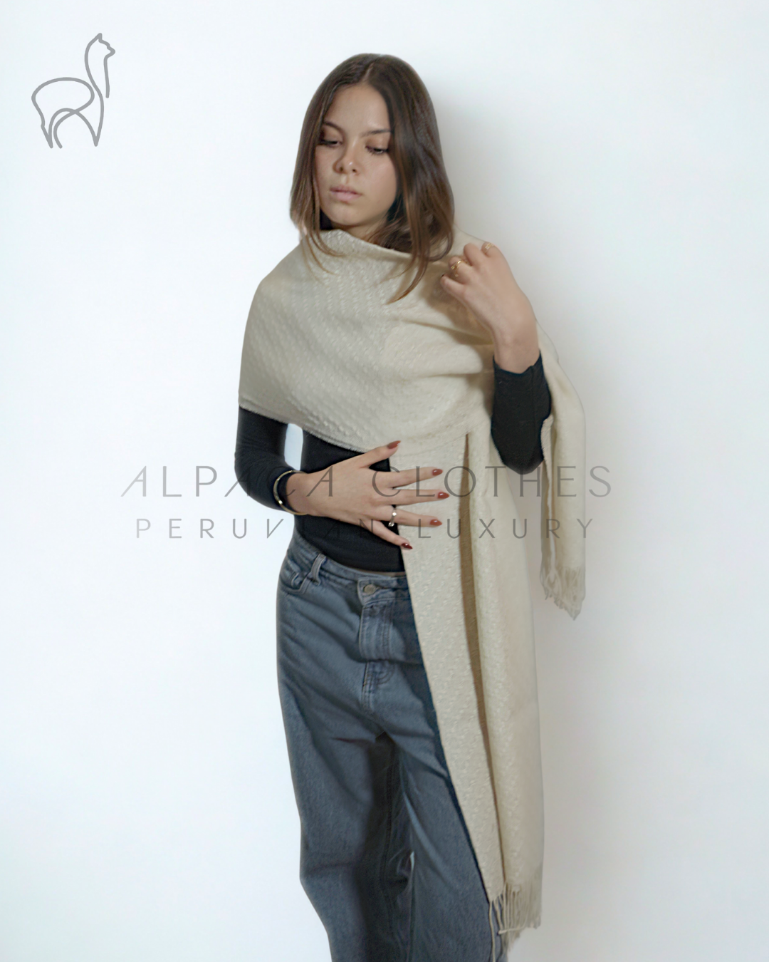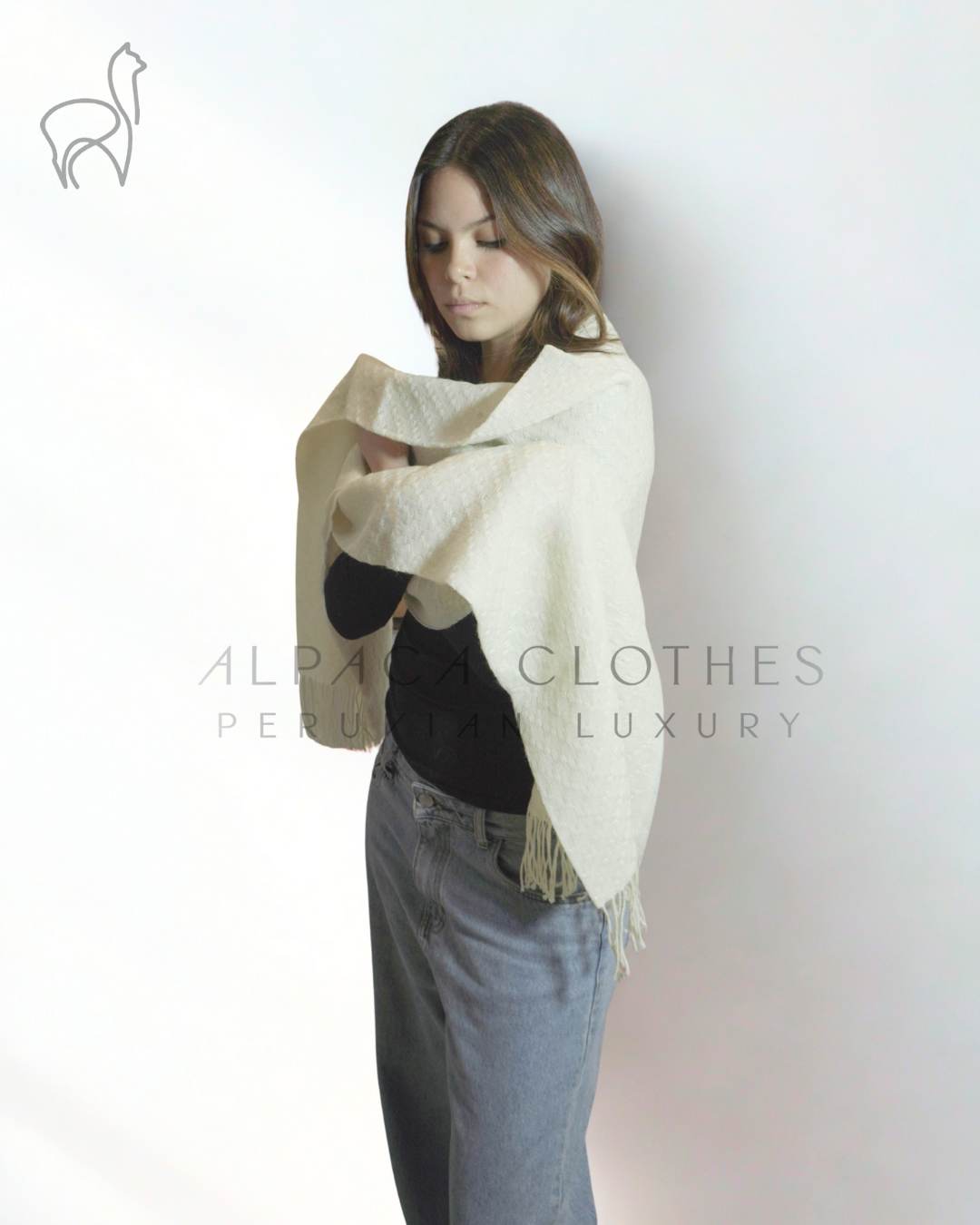 Wrap yourself in the unparalleled experience of luxury with our Baby Alpaca Pashmina, a timeless piece crafted from the softest fiber Peru offers the world. We recognize the excellence of our raw material, guaranteeing an accessory that provides superior warmth without adding weight and is delicately hypoallergenic for everyday wear. Ideal for all year round: wear it as a shawl, scarf, or wrap, adapting it to any occasion.