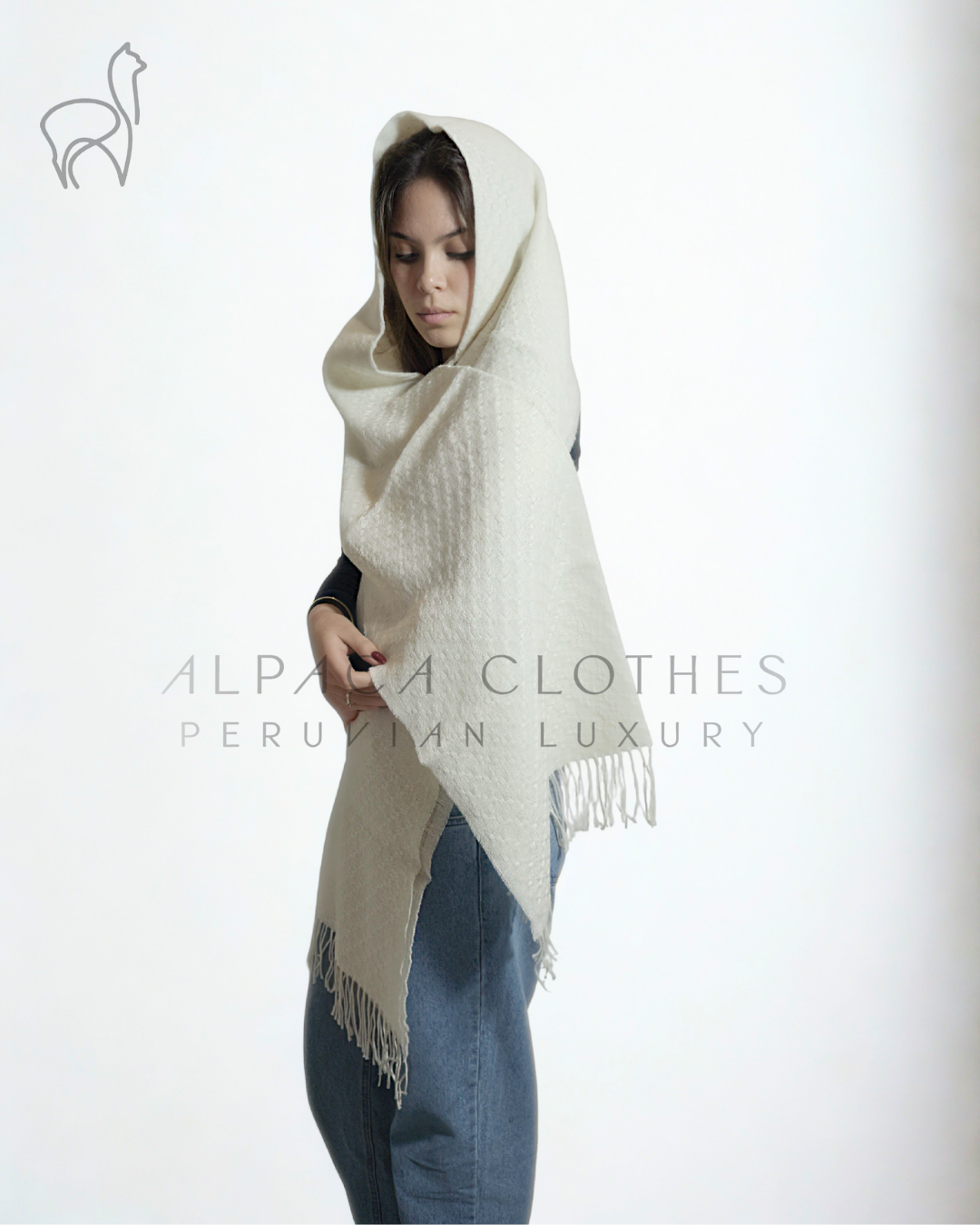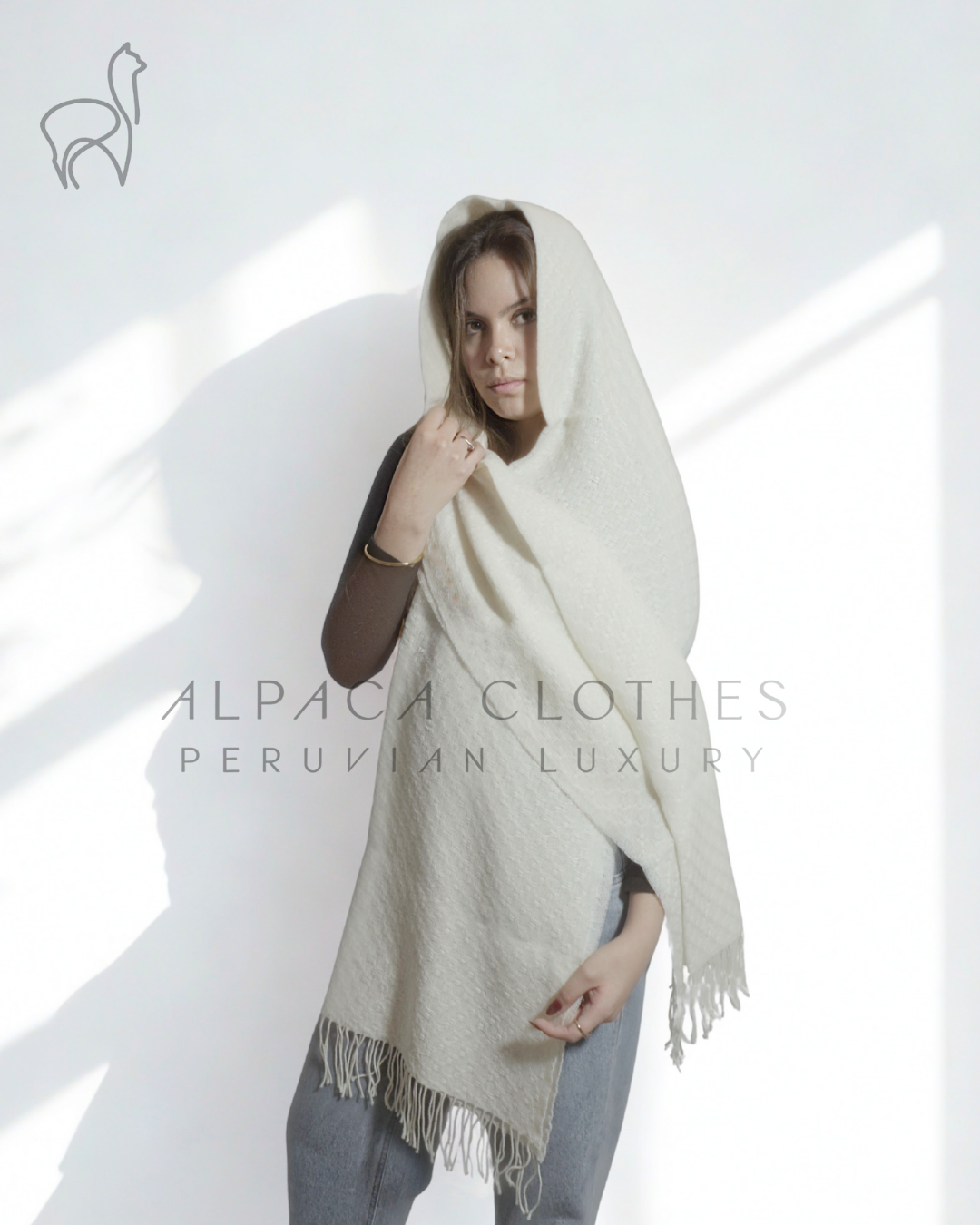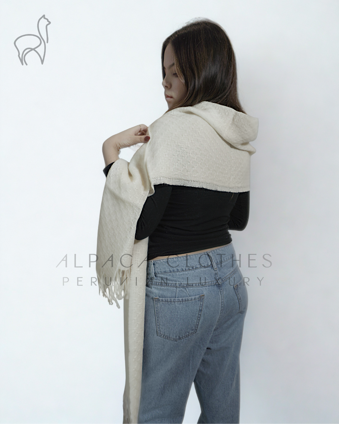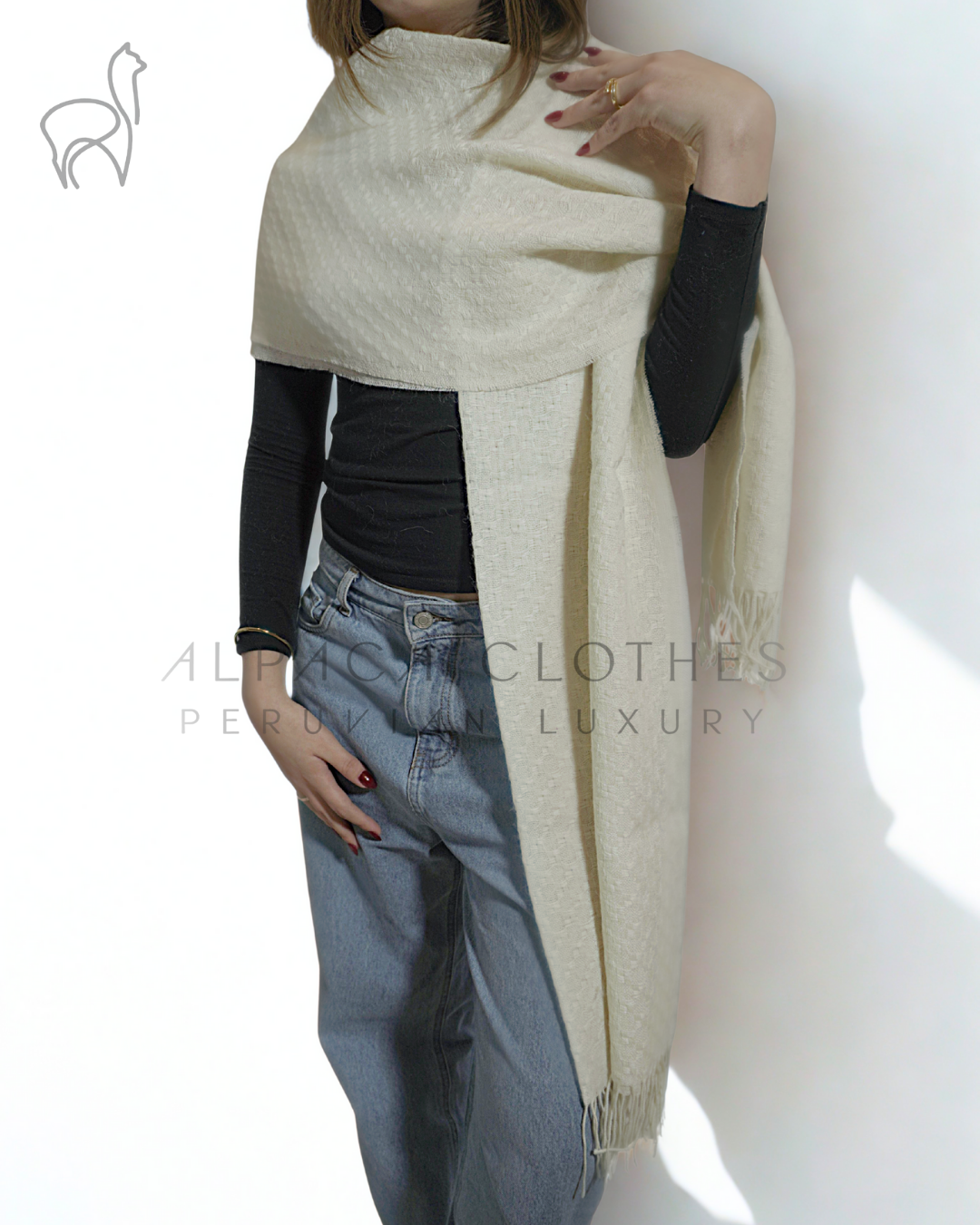 Wrap yourself in the unparalleled experience of luxury with our Baby Alpaca Pashmina, a timeless piece crafted from the softest fiber Peru offers the world. We recognize the excellence of our raw material, guaranteeing an accessory that provides superior warmth without adding weight and is delicately hypoallergenic for everyday wear. Ideal for all year round: wear it as a shawl, scarf, or wrap, adapting it to any occasion.