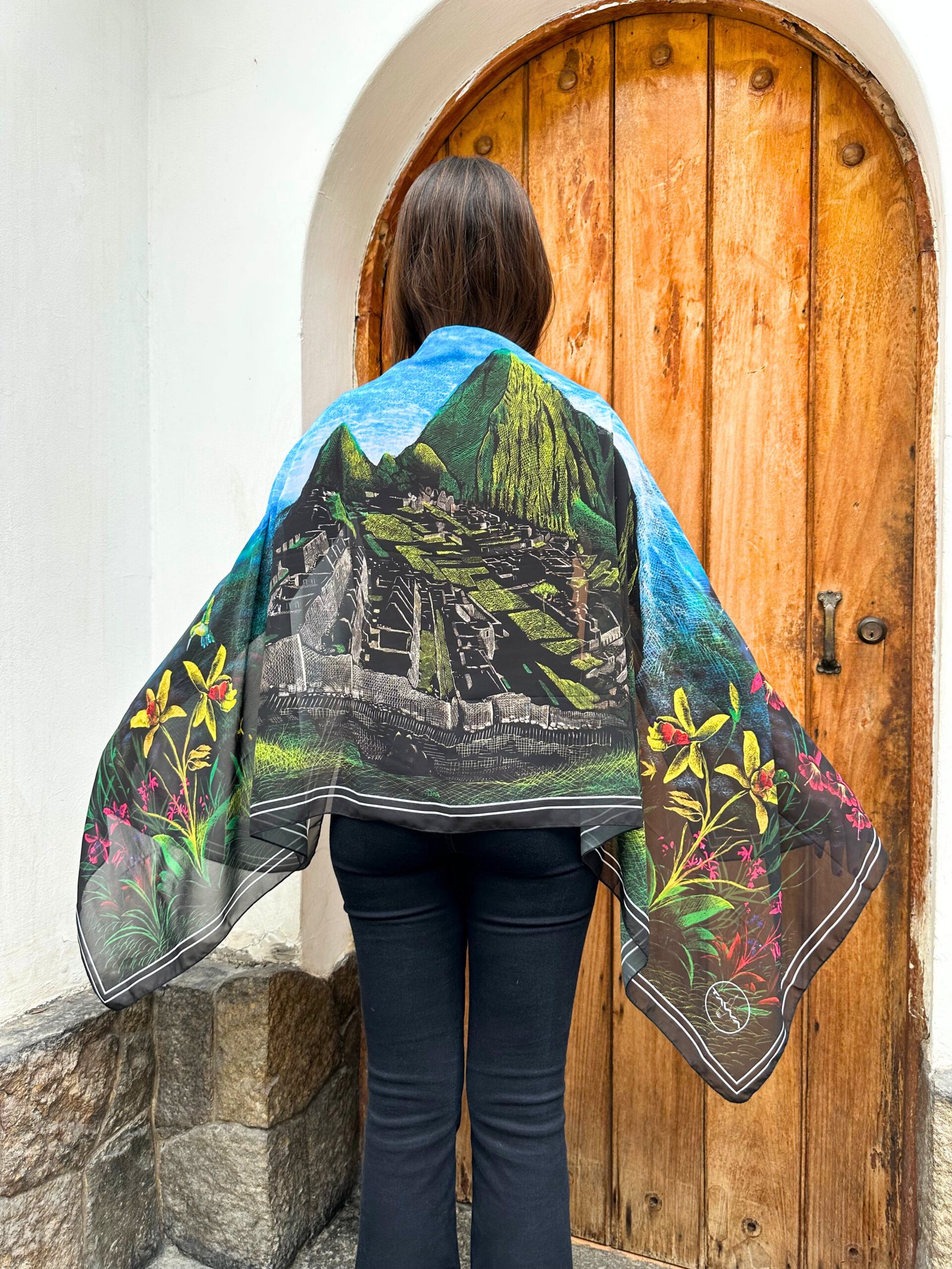 Discover Picchu, a pashmina that pays tribute to the greatness of Machu Picchu. Its exclusive and vibrant design radiates energy, joy, and elegance, making anyone who wears it stand out and capture every gaze.