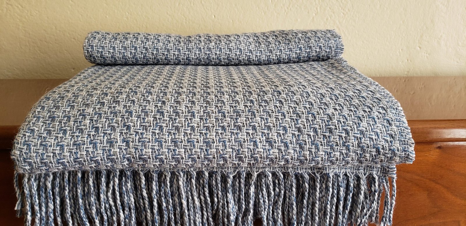 White Blue Inka Alpaca Blanket